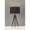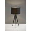 Introduce a contemporary accent to your living room or bedside with the Director table lamp. The black metal tripod legs are an angular counterpoint to the black drum shade. A three-way rotary switch on the socket controls a 100 Watt incandescant bulb or equivalent CFL. The 3-way rotary socket switch will only work with a 3-way light bulb, otherwise this lamp will function with simple on/off switch at its highest setting. This lamp has a black cord that runs through the leg, hidden from sight. This lamp is also smart outlet compatible. Bulb is not included.