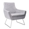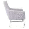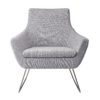 An open, reclined shape with thin, brushed steel legs, the Kendrick chair lightens up contemporary style with airy ambiance. Smooth clean lines are both modern and industrial. The beauty of this collection lies in its simplicity. Rich texture in a woven light grey fabric of 100% polyester provides an interesting variation to the sleek, smooth steel base. A weight capacity of 350 pounds is recommended for this item. With an interior seat width of 22.5″, a seat depth of 21″, and seat back height of19.5″, the Kendrick Chair is a spacious and cozy option. Overall dimensions are 33″W x 30.5″D x 37″H.