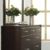 Crafted from Tropical Mahogany solids and a variety of beautiful veneers, the Nevis collection is a foundational American classic. Stained in a rich Espresso tone, this group offers a vast array of platform, low-profile and sleigh bed options for looks that are both sleek and functional.