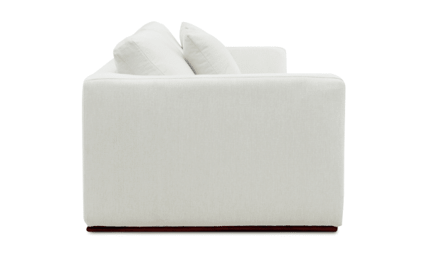 The Rue sleeper sofa effortlessly transforms from a chic sofa to a comfortable sleeper. Its back cushions can be removed, and the seat folds down to rest on the floor, creating a mattress that offers spaciousness between a double and queen size. Filled with a luxurious 70% feather fill and featuring a bench seat design, the sofa’s rubber wood base creates a unique floating appearance.