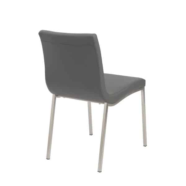 Designed with an elegant, contemporary flair, this Scott Side Chair is a study in stylish form and delightful function. Featuring a subdued gray seat and back, this unpretentious chair fits into any business environment. Crafted for comfort, it also makes a great card table chair. Stainless steel construction ensures long life.