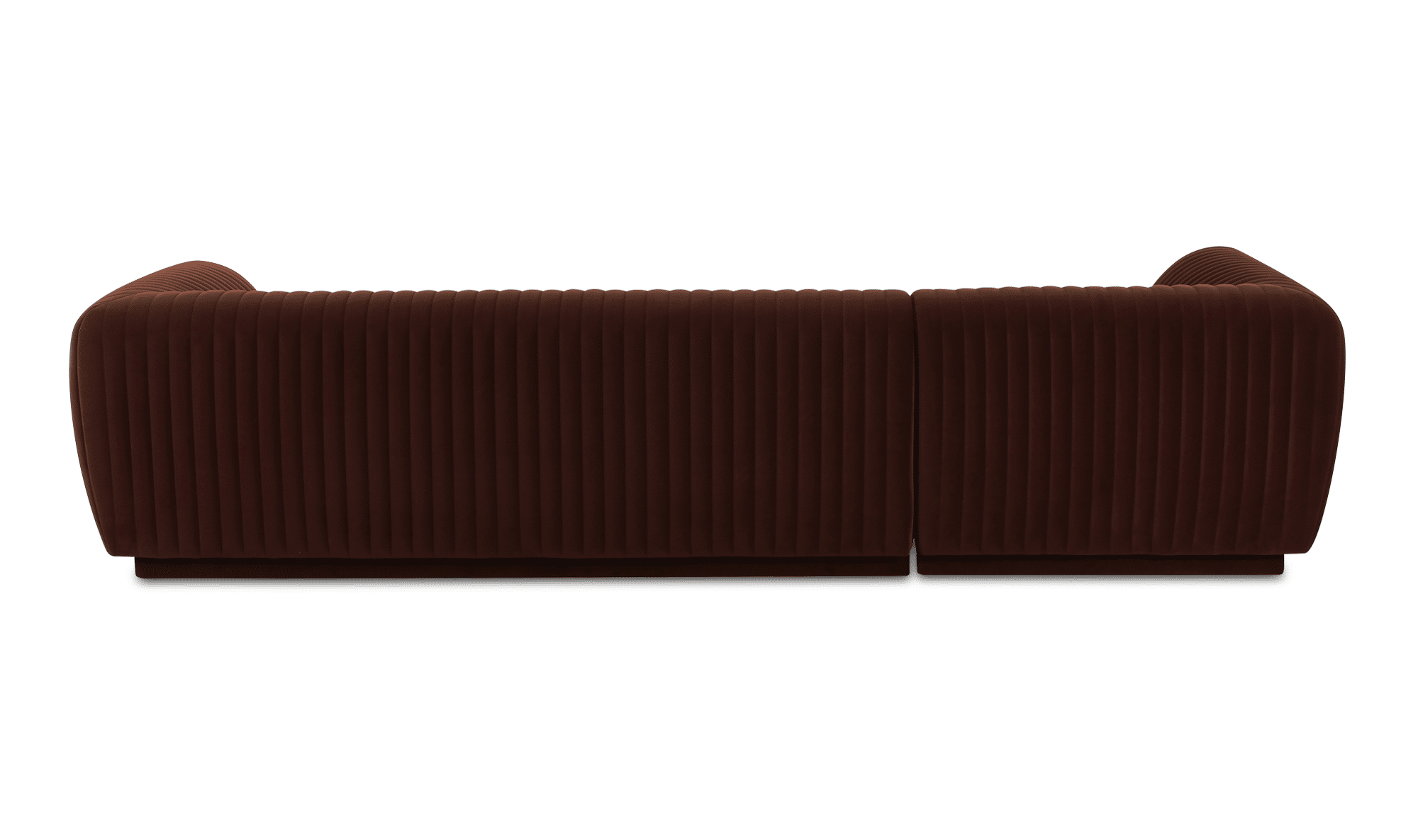 The Zandro sectional brings a tasteful touch to any room with its plush velvet upholstery, a soft touch with subtle elegance. Its vertical channel detailing along the back and arms adds a sophisticated visual texture, while the warm, neutral color allows it to blend seamlessly into any décor without overwhelming.